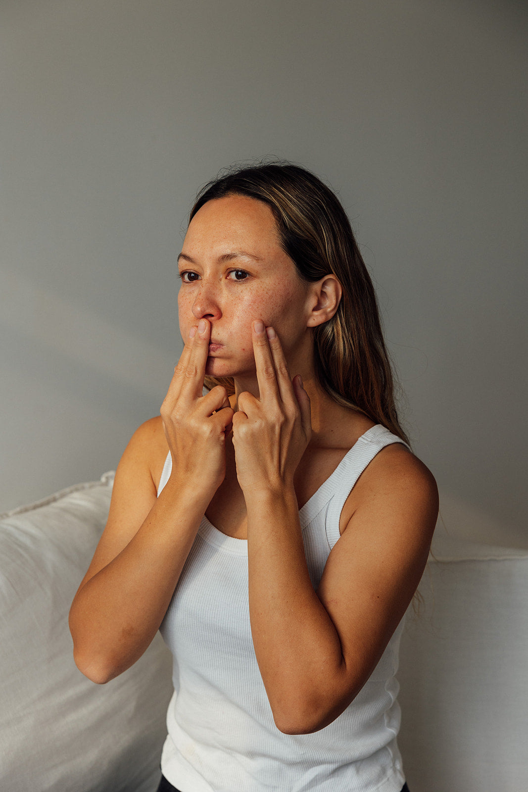 Liberarás tensión acumulada en la zona de las cejas, frente y mandíbula después de todo el día frente al pc y móvil.